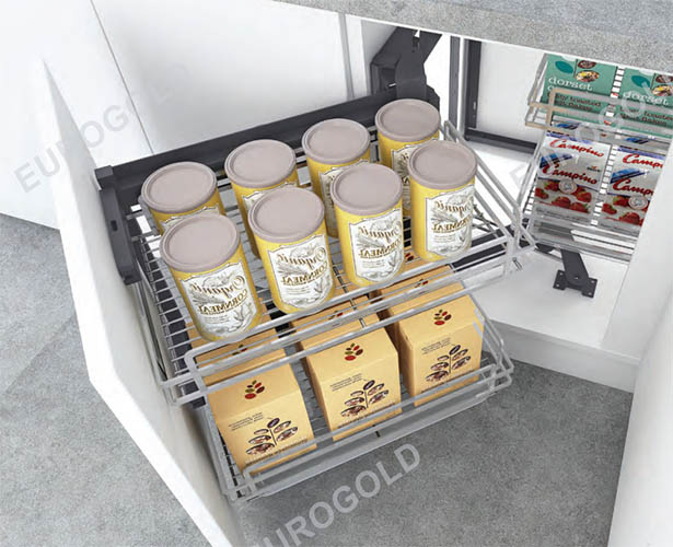 Với những phụ kiện thông minh như giá liên hoàn nan ray giảm chấn Eurogold, mọi góc chết trong tủ bếp đều có cách giải quyết. Góc chết tủ bây giờ không những là nơi bảo quản được hàng loạt các loại đồ đạc vật dụng nhà bếp một cách hữu dụng mà hơn nữa, còn là điểm nhấn giúp căn bếp thêm hiện đại, tiện nghi.